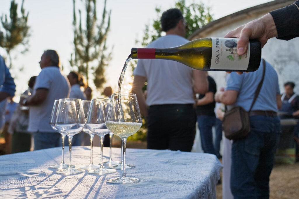 Sob um céu límpido e um pôr-do-sol de cortar a respiração, a festa fundiu o melhor da hospitalidade portuguesa com a sofisticação serena dos nossos vinhos, numa noite repleta de elegância e natureza. O ambiente foi ritmado por música ao vivo, criando uma atmosfera mágica e envolvente, que permitiu uma experiência única de degustação.