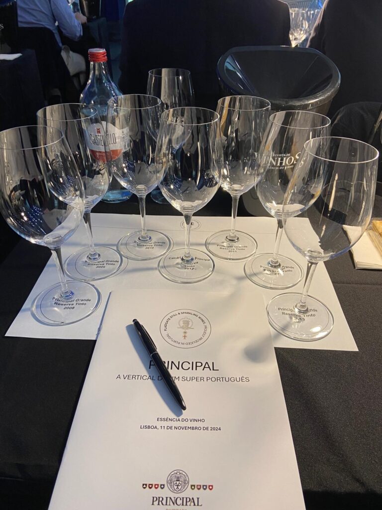 O primeiro vinho a ser degustado foi o Calcário3 do Principal Tinto 2014, com os seus taninos firmes e grande persistência em boca, dando lugar ao Principal Grande Reserva 2013, o novo lançamento da marca Principal, que cativou com os seus aromas de fruta preta e especiarias de madeira, acidez fresca e longo final. A prova terminou com o Principal Grande Reserva Tinto 2008, que demonstrou uma grande evolução no seu envelhecimento.